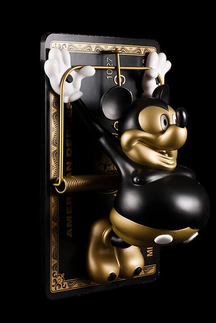 黑卡象徵著美國資本主義的捕鼠器地位,對於美國消費觀念的苦悶,Ron English 用獨特視覺風格創作出這個作品,高約12吋,限量200個每個售價約400元美金,有興趣的朋友可以前往出處相關的連結參考一下。