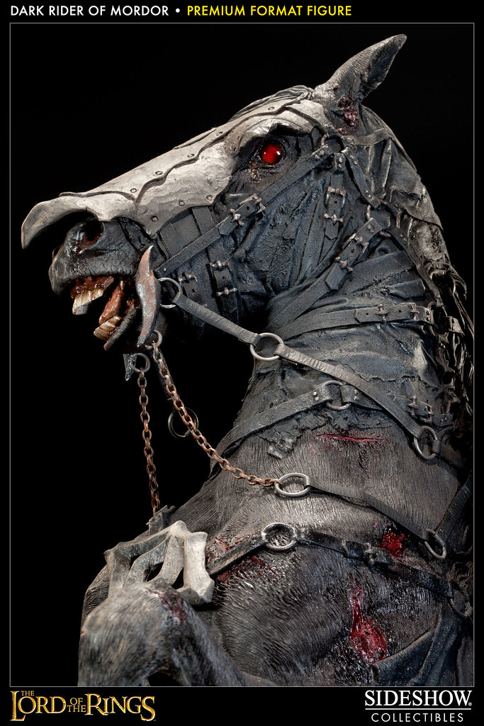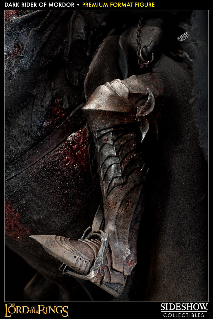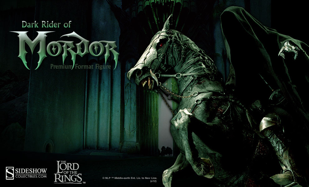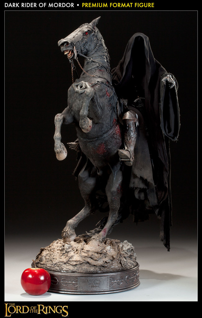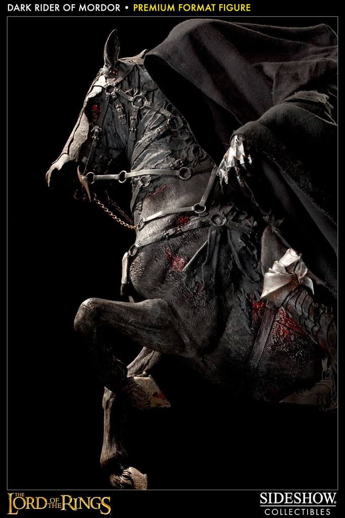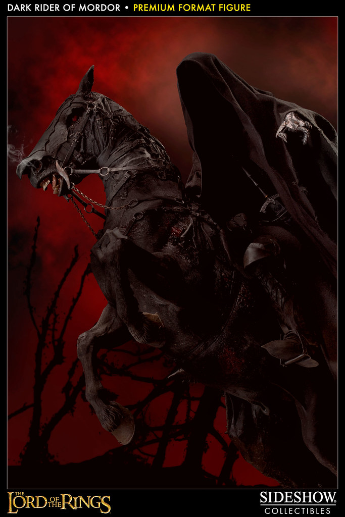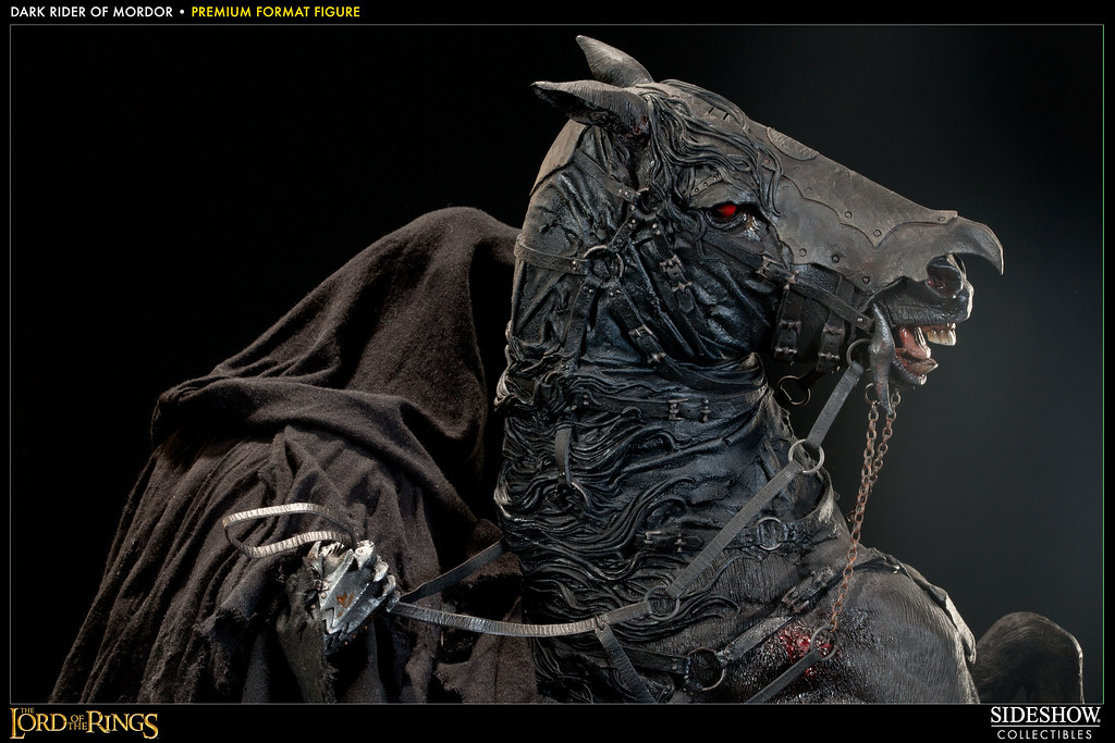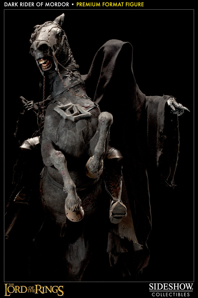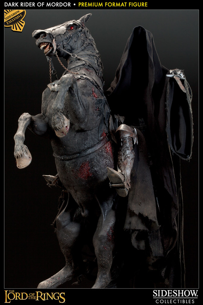 Sideshow 推出了令人震撼的「魔戒:魔多黑騎士雕像」(The Dark Rider Of Mordor Premium Format Figure)。Sideshow 最高規格、水準製作的Premium Format 系列,戒靈的布衣、皮與金屬製的馬具使用了多種材質來製作,增添造型的層次,而複雜精緻的立體造型施以最高水準的塗裝工序,讓整體造型栩栩如生,不論什麼角度觀賞都令人激賞,堪稱世界最高水準,絕對能夠使用藝術品來形容。