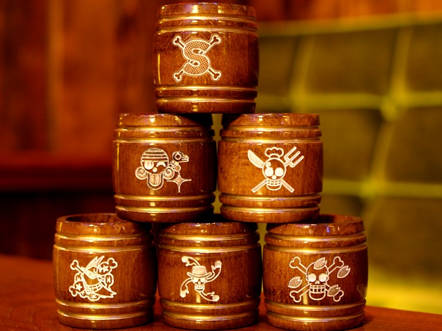 海上男兒最愛痛快喝酒!那麼蒐集幾個有海賊旗標緻的木製酒杯也是很正常低~URAKITA自從推出一系列烙印海賊旗的酒杯後,就不斷推陳出新,至今已經有四、五十款喔!某方面來說,這系列就是海賊旗大集合啦!各位玩具人您認得幾款呢?有興趣可以到http://urakita.ocnk.net/選購,而且還有幫您印上名字的客製化服務,真的太甘心了!不過未成年請勿飲酒,拿來喝汽水也是很歡樂啦!