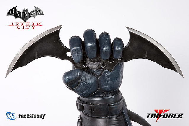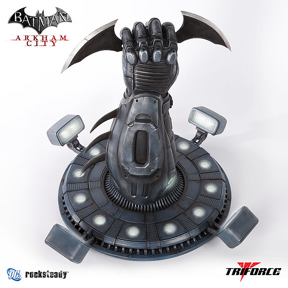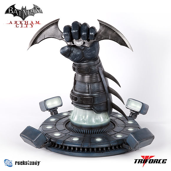 專門推出電玩題材1:1複製道具的新銳廠商「TRIFORCE」,宣佈推出知名暢銷百萬級電玩“蝙蝠俠:阿卡漢城市”當中,蝙蝠俠所使用的蝙蝠飛鏢1:1複製品。這一款高度重現的蝙蝠飛鏢1:1複製品,是由電玩「阿卡漢城市」的製作公司Rocksteady Studios 提供完整造型的資料而製作,並且使用了蝙蝠俠的手臂作為地台設計,並且地台內建了燈光的機制,包含手臂的部分都會發光,令整體造型在陳列上更加有氣氛與質感!