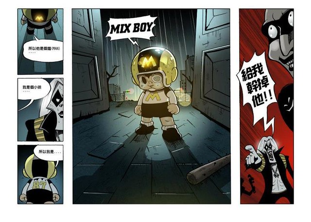 其實他的外型在2004年就已經完成,並且有打樣成玩具參加過多次玩具展,但苦於沒有將故事畫出來,讓我對於他的實體化始終保持觀望的態度。直到兩年前接觸到《Kick Ass特攻聯盟》加上對於漫畫創作一直有種嚮往,於是,我開始進行《MIX BOY達陣男孩》的故事內容。