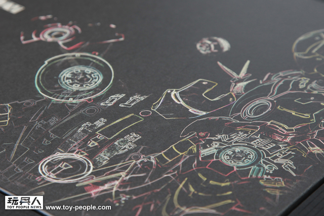 ↓ 全黑的包裝加上高科技風格的彩色線條,相當能夠傳達出鋼鐵人高科技的質感。
