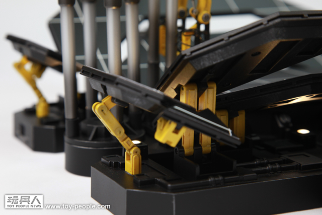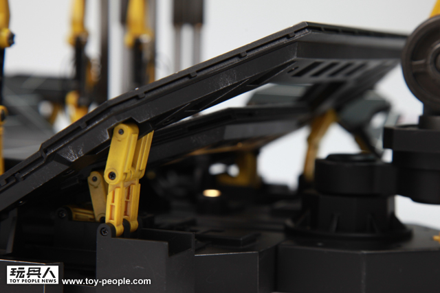 ↓ 變形地台底下讓變形功能作用的支撐臂,每一個關節都使用螺絲釘可以旋緊讓地台造型更加牢固。