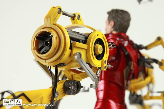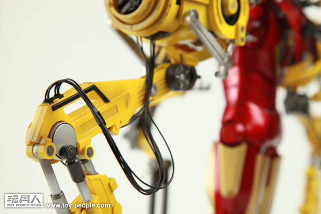 ↓ 機械手的三個“手指”是能夠活動的,還夾著幫東尼滅火用的滅火器,令人聯想到電影中爆笑的場景。