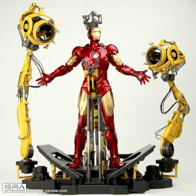 這一款鋼鐵人2:鋼鐵人馬克4 with 著裝整備台真的是相當精彩的一款作品!首先是是著裝整備台,光是欣賞複雜的造型就能令人大呼過癮,加上機械手臂高度可動的關節設計更令把玩增添了許多樂趣,也為觀賞造型塑造的靈活度大幅加分;另外變形地台,造型、使用軟性磁鐵可供靈活變換的地板以及地台底下暗藏燈光構造的設計更增添了整體造型的深度,絕對令鋼鐵人粉絲滿意。對於已經擁有馬克4的鋼鐵人粉絲來說,選購單獨發售的MMS161 著裝整備台即可。但是如果過去未能入手鋼鐵人馬克4,這絕對是一個超值組合,除了鋼鐵人馬克4以外,還能獲得許多粉絲喜愛、已經絕版的東尼測試版機械手臂,加上精彩表現的著裝整備台,這絕對是一款千萬不容錯過的精彩商品!