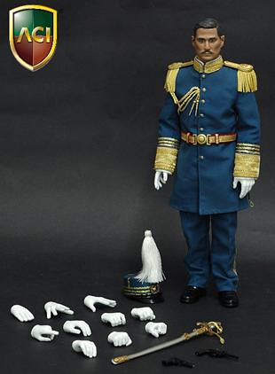 精緻的頭雕相當傳神,所佩帶的軍刀和軍刀帶以金屬高仿真精美細緻雕刻,大元帥的服飾非常講究,有多達12隻多型態替換手雕,ACI的標準速體,勃朗寧手槍+柯以特手槍相當逼真!!