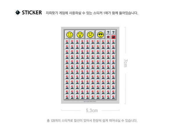 遊戲的玩法很簡單,將卡片上想移除的區域刮開,或是貼上附贈的貼紙標示上地雷記號;地雷一共分為80 枚與120 枚兩種難度,另外也能在頭像的部分貼上貼紙標示自己的過關於否狀態,如此創意幽默的特殊明信片相當地有意思。