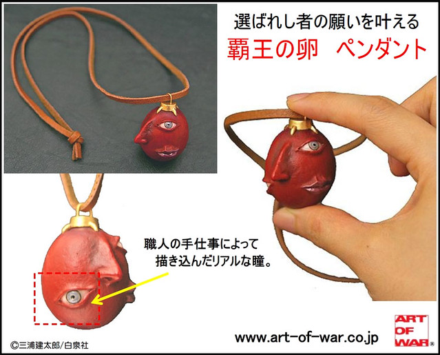 奇幻暴力漫畫烙印勇士,故事中的關鍵核心之一就是貝黑利德(霸王之卵),是能夠感受慾望、罪業以及黑暗魔力產生感應的儀式媒介,得到貝黑利德並且奉獻祭品的人,將得到開啟魔界並墮入魔道。由ART OF WAR廠商預計8月推出其項鍊商品,先前報導過的烙印勇士霸王之卵2011版 和 全家便利商店的特別版本 有所不同,大小約4公分,皮繩長約64公分,售價約3465元日幣,喜歡烙印勇士的玩具人可以參考一下。