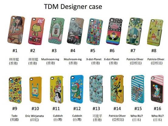 而在去年玩具展中反應熱烈的手機殼,現追加全新六款iPhone 4/4S 保護殼,其中的設計師包括:Mushroom-ing(香港)、X-dot-plant(香港)、Patricio Oliver(阿根廷)限量發售,每款定價NT680。