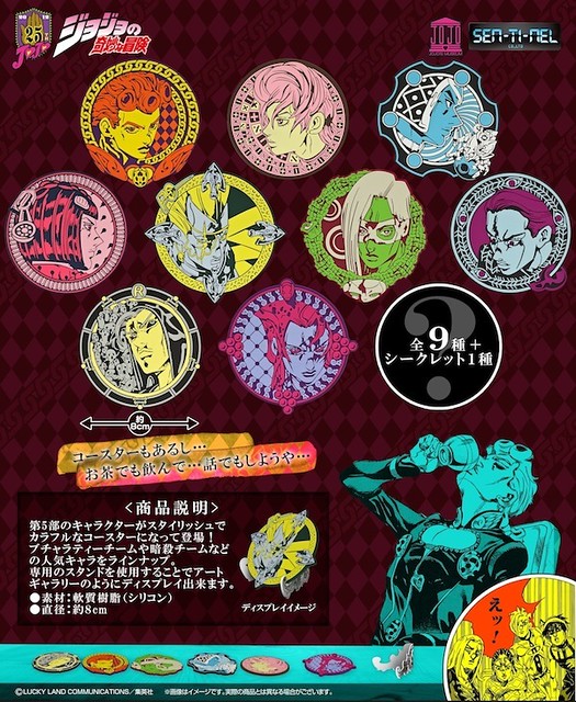 玩具新聞 千值練 JOJO的奇妙冒險 JOJO冒險野郎的奇妙下午茶(杯墊) 玩具課長 2012-06-25 19:26:24 分享 ✕ 分享 已複製網址 分享到 Facebook 分享到 LINE 分享到 Reddit 分享到 Twitter 分享到 Plurk 分享到微博 千值練最新在BLOG上公佈將推出一系列JOJO冒險野郎杯墊,設計採用第5部的人氣角色,不管是色彩還是圖案設計,都有非常強烈的視覺風格。材質採用軟膠樹脂製成,直徑8公分、厚約4公厘,並且附有支架,可以將杯墊立起來,增加蒐藏的陳列性能。一共推出9+1隱藏版,單一日幣參考售價約500日圓,預計2012年9月底發售,提供大家參考! 玩具課長 十分老實的上班族,夜夜入眠想著的都是玩具公仔... 如果你也一樣睡不著,歡迎加入玩具人!
