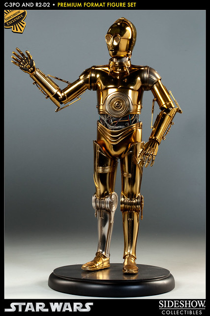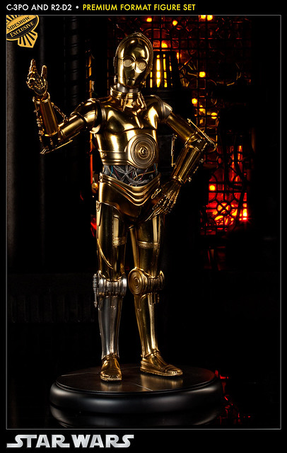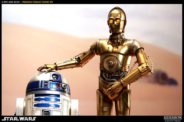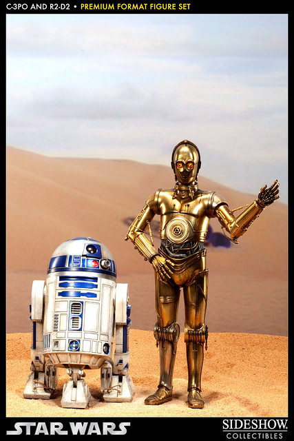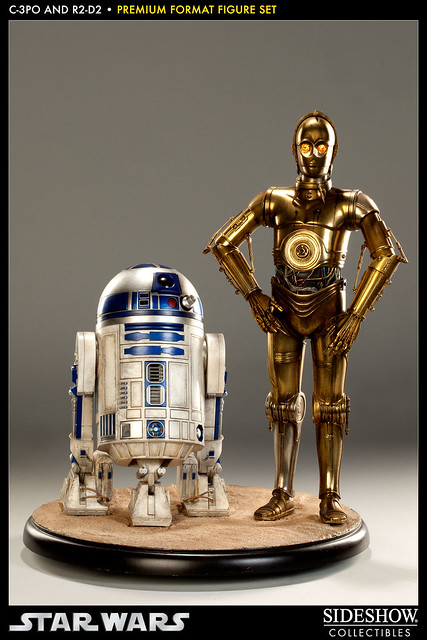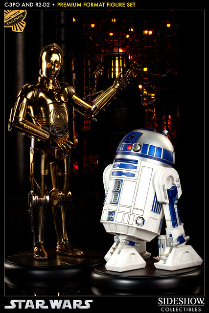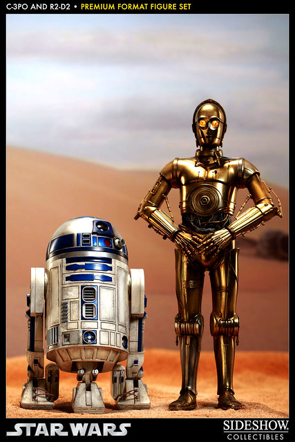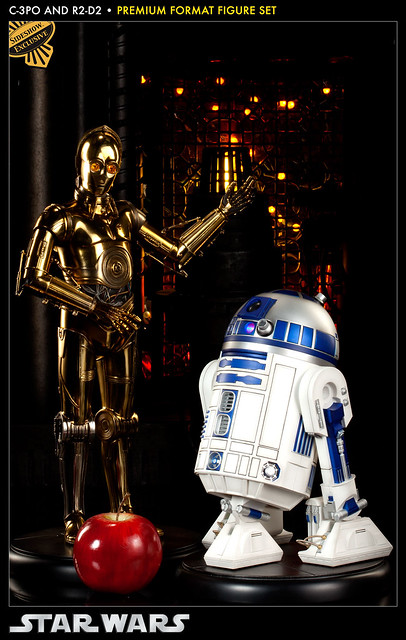 Sideshow 旗下系列最高等級的Premium Format 雕像系列,推出了經典科幻史詩電影「星際大戰」當中,被譽為史上最知名機器人的兩位配角「C-3PO」與「R2-D2」。這一款雕像組合,以超高度、完整並忠實地重現了C-3PO 與 R2-D2 的造型、塗裝與細節,如此的水準超越市面上所有其它C-3PO 與 R2-D2 主題商品,就連熱愛苛求、講究細節的星戰粉絲也為之折服、無可挑剔;Sideshow 一公佈就造成轟動,並熱烈詢問購買資訊。