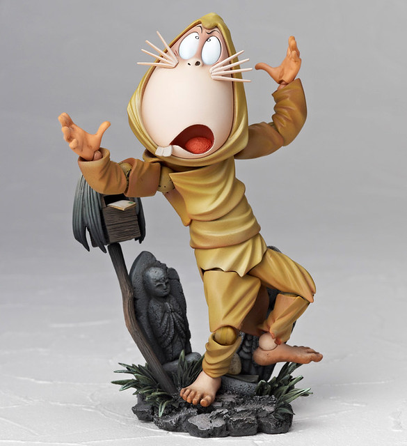 海洋堂嶄新系列的リボルテックタケヤ(REVOLTECH TAKEYA)繼佛像系列之後,推出了嶄新的鬼太郎系列“ゲゲゲの鬼太郎立体絵巻”(GEGEGE 的鬼太郎立體繪卷),高水準的塗裝、完全忠於原作彷彿漫畫角色真實立體模樣的造型,一公佈就受到各界強烈的注目與好評,繼“鬼太郎”、“眼球老爹”,再度發表“ゲゲゲの鬼太郎立体絵巻”系列作第三款,REVOLTECH TAKEYA 008 :鼠男(ねずみ男)。