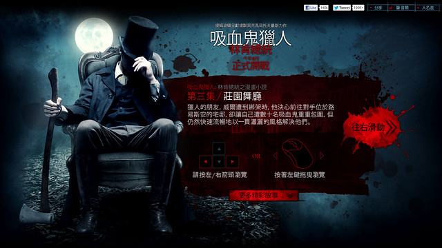 「吸血鬼獵人:林肯總統」另外還推出了線上漫畫小說,動畫加上音效氣氛十足!現在已經出到了第三集。
