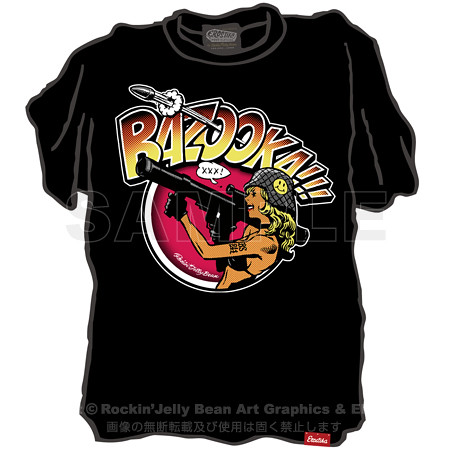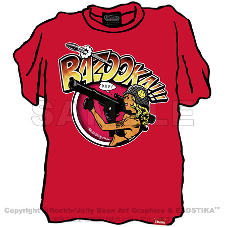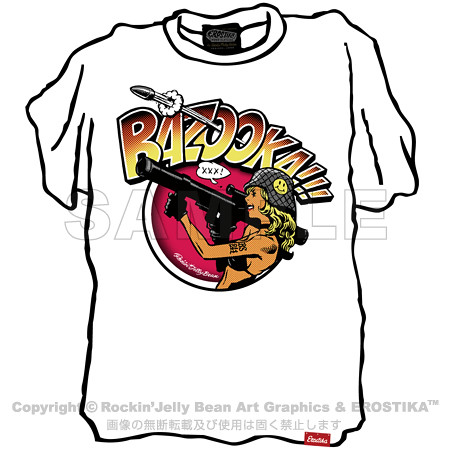 Erostika 推出由Rockin'Jelly Bean 與「BSスカパー」 的電視節目「BAZOOKA!!!」所合作的LOGO T恤。「BAZOOKA!!!」是出自一個日本付費電視台頻道「BSスカパー」的聊天談話性節目,由喜劇演員、藝人「小籔千豊」與嘻哈歌手、性格男演員「真木蔵人」所主持;由於是付費電視台頻道,所以這個談話性的節目內容較為辛辣與偏門,比方說邀請SM大師上節目暢談SM女王與奴隸、SM 捆绑表演,或是邀請格鬥家、八卦記者、地下電影導演...等。Rockin'Jelly Bean 於2011年獲邀為「BAZOOKA!!!」設計主視覺LOGO,在這個節目逐漸受到觀眾喜愛之後,正式推出LOGO T恤。