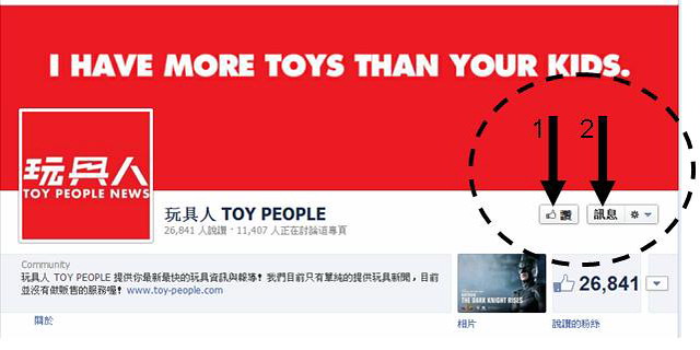 三、 到玩具人粉絲團依下圖指示按讚並留下正確答案訊息