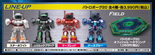 TAKARA TOMY - Omnibot バトロボーグ20 一共四款配色:星星白/火星紅/地球藍/宇宙黑,預計2012年7月14日發行,每組機器人售價3,990(1隻機器人/1副左右手控制器)另外還有販售專用的戰鬥台,邊長20公分的正六角型,售價1,050¥