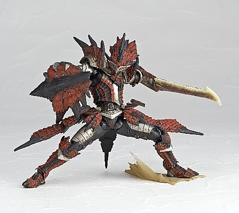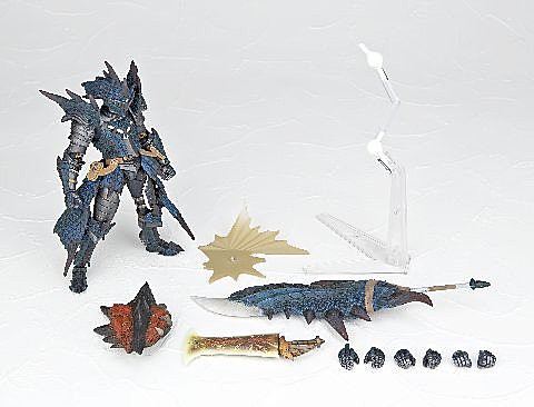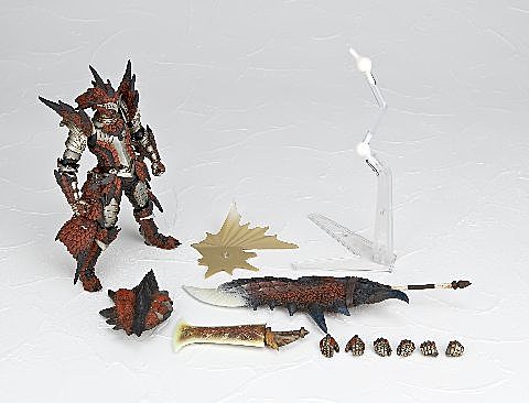 海洋堂才公佈發行電玩遊戲 Monster Hunter 魔物獵人的火龍可動系列,近日又公佈了Revoltech No.123 輪轉可動系列 編號123號的 Monster Hunter 劍士角色,下方藍色版本為Revoltech Power Shop 發售限定款,預計2012年9月15日發售,高約14公分,全身可動關結數約23個,喜歡Monster Hunter 魔物獵人的玩具人千萬別錯過了!