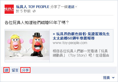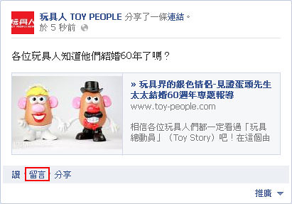 2.“玩具人 TOY PEOPLE NEWS”FaceBook 粉絲團上側。