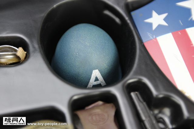 ↓ 第一層卡紙下方,象徵美國隊長盾牌的紋章使用鏤空設計,相當高級。