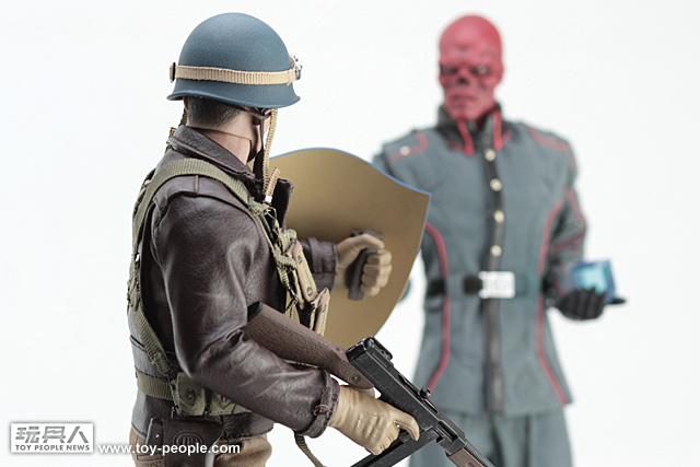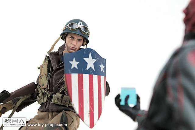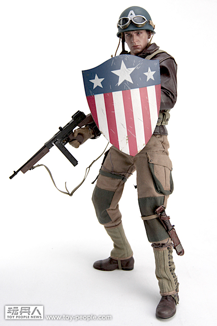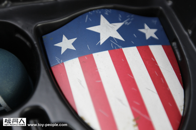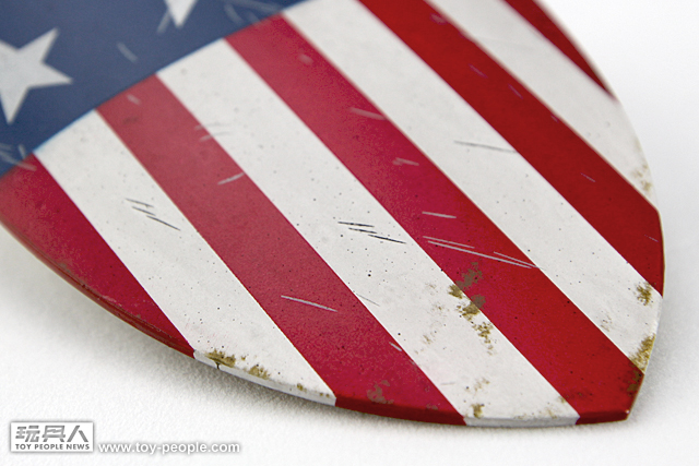 ↓ 美國隊長此時還沒有使用霍華史塔克製做的汎合金盾牌,使用的是勞軍巡迴演出所使用的歌舞道具盾牌。