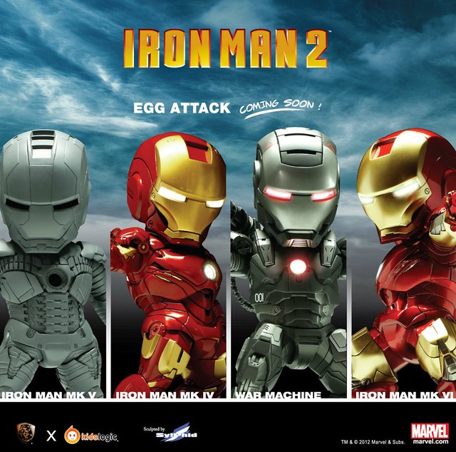 Beast Kingdom × Kids logic:Egg Attack IRON MAN 不可動,人偶高約15cm,眼睛、雙手、胸口以及底座內藏LED燈,預計2012年第4季發售,目前售價未定。