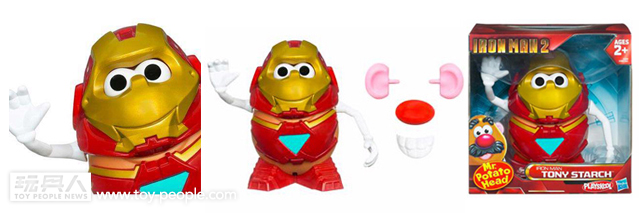 在復仇者聯盟上映之後,許多人應該覺得綠浩克相當的搶戲吧!不過相信應該還是很多玩具人跟小編一樣還是最喜歡「鋼鐵人」犀利的嘴炮功力。所以囉,蛋頭先生不惡搞一下鋼鐵人好像對不起自己啊!其實在2010 年鋼鐵人2 上映之際,兒樂寶就順勢推出了馬克六的TONY STARCH 蛋頭。胸前倒三角的反應爐真的是太帥氣了,不知道鋼鐵人3 上映的時候會不會有馬克八的版本呢?!(誤)