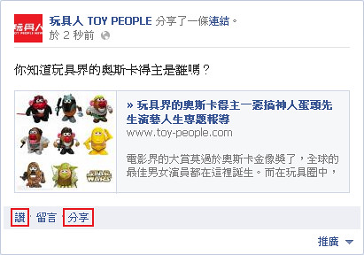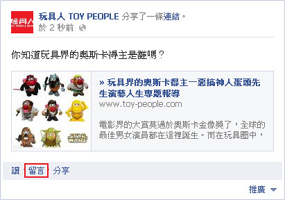2.“玩具人 TOY PEOPLE NEWS”Facebook 粉絲團上側。