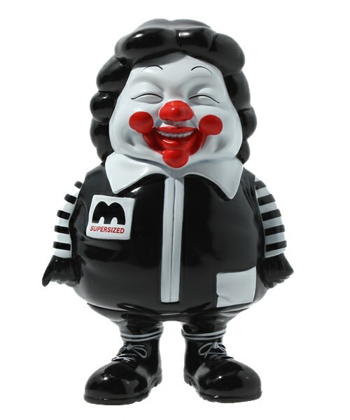麥胖又來了!全黑的版本好邪惡啊!小編的荷包快不保了,才剛預訂了Ron English的玉米殿粉船長Cap’n Cornstarch,現在又推出新的聯名麥胖。這款由Toy Tokyo x Secret Base x Ron English所聯名推出的McSupersized Me是小編目前最喜歡的一款麥胖,黑色為底的身體配上白色的臉以及紅色的小丑裝!好讚啊!建議售價:¥7,140。有興趣的玩具人可以至Zozotown網站選購。