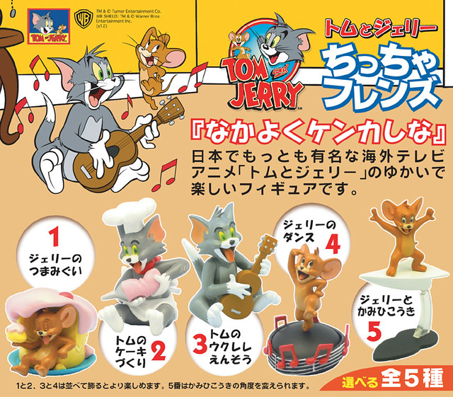 日本玩具小廠牌F-toys 推出了知名經典卡通“湯姆與傑利”「小小朋友」食玩組。“湯姆與傑利” 是一個美國的短篇系列動畫,原名“Tom and Jerry”,台灣電視公司在70年代播出時曾經譯作「妙妙妙」。