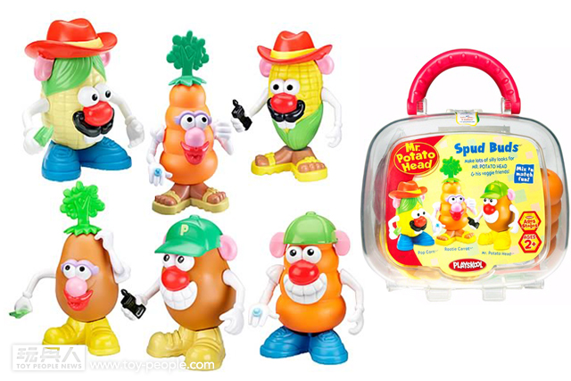 另一個兒樂寶公司很可愛的系列就是Spud Buds™。這一系列的蛋頭Size都比較小一些,但是造型卻是更為可愛啊。過去甚至還有推出玉蜀黍、紅蘿蔔與蛋頭先生的組合包呢!原來蛋頭先生還會找其他的蔬菜夥伴一起來瘋一下!(誤~)