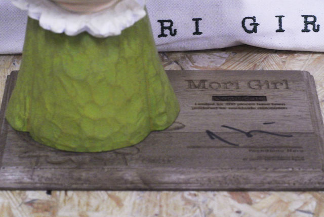 事實上,這顆小樹耗時6年才得以長成。若有留意奈良的畫作、雕塑,你會知道Mori Girl一直都在,只是她從沒既定形象與名字。直至6年前,奈良與香港製作公司HOW2WORK,正埋首合作試造Sleepless Night Sitting。慢熱的他吐露對森子的情結,萌生替森子推出產品的念頭,後來替她起了Mori Girl的名字。去年6月,我們曾介紹由奈良筆下小狗演化的Doggy Radio,並刊出Mori Girl半完成品的側影,惹來眾人驚豔。當時奈良美智的說法是:「雖說是差不多完成,但是還未決定它鼻子的形狀。還在疑惑應該給它一個普通的鼻子,還是像小木偶一樣的木枝鼻子。」以慢工細貨見稱的他,為找尋這個完美鼻子,懊惱近一年,足足試驗了廿多個版本。