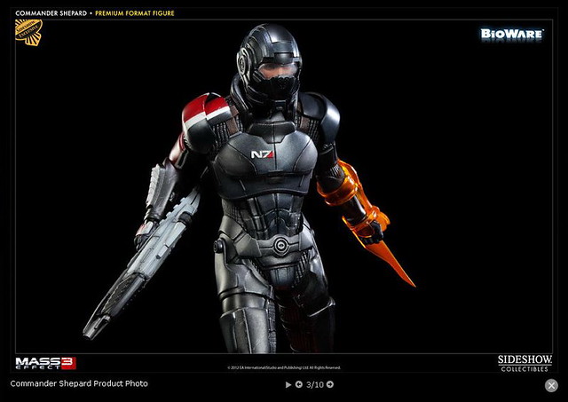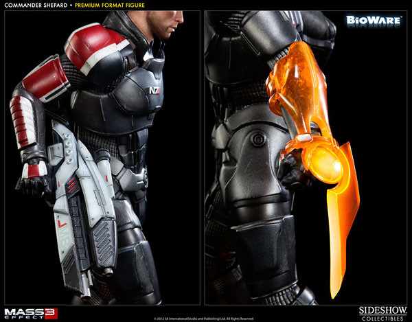 RPG大作質量效應3(Mass Effect 3)近日由Sideshow宣佈推出雕像作品。主角薛普指揮官採用遊戲預設造型,眼神堅毅再配上鬍渣與傷疤格外有型!武器配備「Omni Blade」以及「M-8 Avenger Rifle」,另外附贈發光地台,科幻氣氛十足啊!限定版還附贈頭盔著裝零件可供替換,所以要買手腳可要快喔!本商品高約48公分,美金參考售價約349.99元,預定2013年3月上市,提供大家參考!