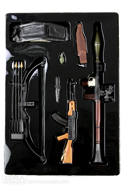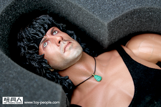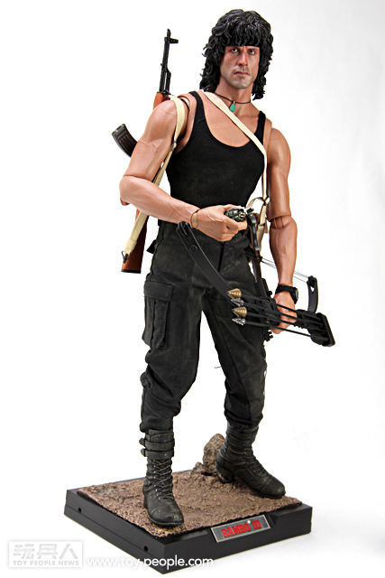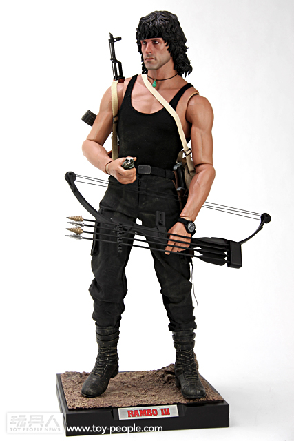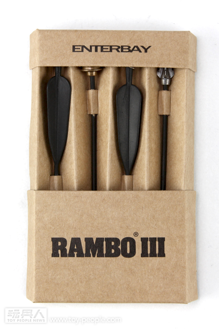 這次ENTERBAY 推出的1/4 Rambo III 藍波,以豐富的武裝加上驚人水準的頭雕令人讚嘆。木製零件打造的AK47 與RPG ,做工細緻與真實的程度都令人驚豔,加上可發射的弓箭以及其它豐富的小配件,令人偶可擺設動作的靈活性增添許多,重現電影中剽悍的藍波形象。對於喜愛「藍波」這一個經典作品的玩具人而言,這真的是一個值得擁有的商品,如果能加上第一波發行的T-800 阿諾,儼然成為夢幻組合「魂斗羅」!