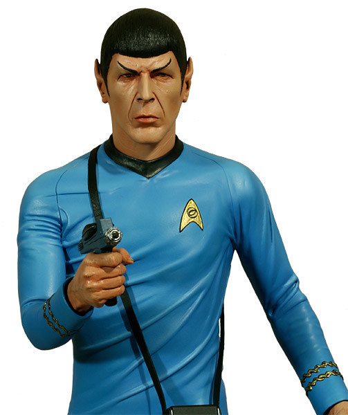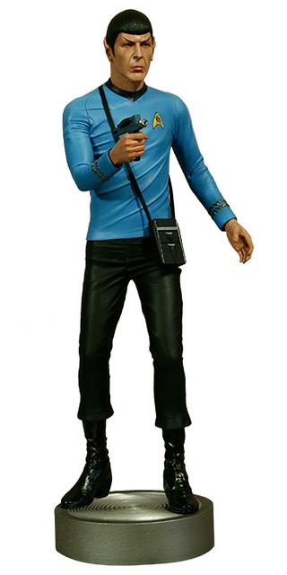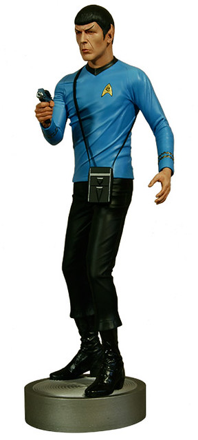 飾演知名科幻影集Star Trek裡史巴克先生的Leonard Nimoy,也許名氣已經超越柯克艦長。史巴克一角不僅在多年後的電影版「星際爭霸戰」中以關鍵角色再度登場,在近年的科幻美劇迷離檔案(Fringe)也以關鍵神秘科學家威廉˙比爾出現,有著十分突出的演出。現在HCG(Hollywood Collectibles Group)繼先前推出的柯克艦長1/4雕像後,再度推出史巴克1/4雕像。兩者都是以經典戰鬥姿態造型設計,基本上就是天生一對啦!作品高約19英吋高,全球限量750體,美金參考售價約279.95美金,提供各位科幻迷參考!