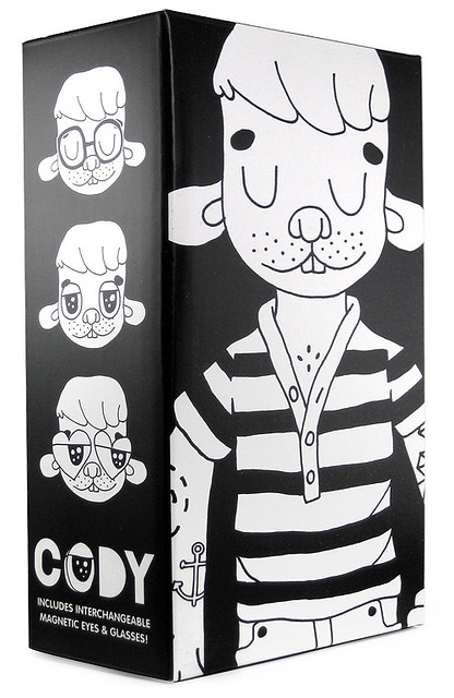 由設計師Jon Knox所推出的兩款Custom-Codys,這次所推出的兩款Cody都是由Jon Knox純手工上色的喔!這兩款手工上色的Cody跟過去的Cody的基底是一樣的喔!搭載了具磁性的小配件,讓你的Cody可以變換不同的眼睛造型喔!高約21公分;建議售價:US$250。有興趣的玩具人可以至Jon Knox Shop來選購喔!