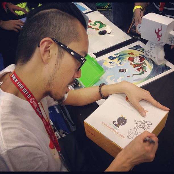 除了動畫之外,馬丁曾擔任各式兒童出版品及博物館展覽活動的插畫家。過去十餘年間,他也著墨於設計自我品牌的T恤,並在美國為數眾多的店家中銷售,馬丁目前正在發展自己的品牌角色,這次和台灣VTSS Toys合作推出Dragon Boy 名為龍仔的設計師玩具,已於上周在台灣正式販售,限量300組,高約 7.5吋,售價約85元美金,喜歡的玩具人可以前往出處的相關連結參考一下。