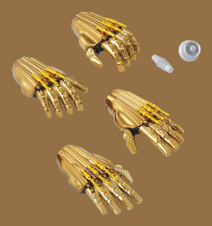 「電影中C-3PO細節部分徹底的檢證了一番、結果、當然左右非對稱甚至還是彎曲變形的、在EPISODE IV登場的時候、左右脛的顏色並不相同也講究正確的立體化。兩眼有LED裝置發光。而且還有附可以拿在手中的聲音遙控器(Comlink)、富有磁性的裝置可以自由裝卸・控制・螺栓。」