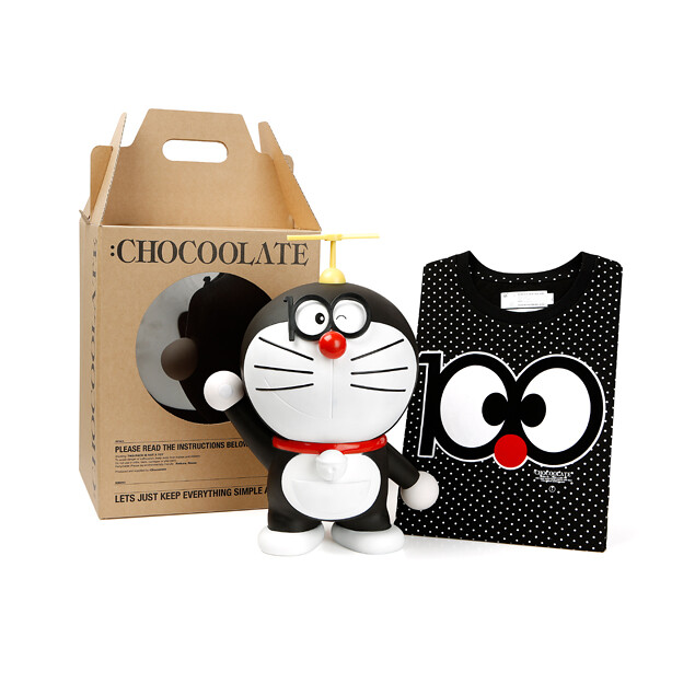 服飾品牌:CHOCOOLATE 預計在2012年9月14日銅鑼灣駱克道分店販售哆啦A夢誕生前100週年套裝組合,內含一個有竹蜻蜓黑白配色的哆啦A夢和有100字樣的紀念T恤,T恤背面也有哆啦A夢的字樣,每套約599元港幣,提供給喜歡哆啦A夢的玩具人參考。