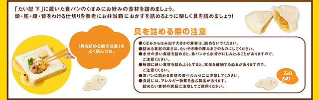 由TAKARA TOMY推出的這款創意料理道具,外觀看起來是一片很可愛的土司,但其實是能製作創意料理的神奇道具。只要把吐司夾在中間,就能壓製出一塊塊吐司鯛魚燒。外型雖然是鯛魚燒,但是裡面的餡料可以隨心所欲調配,製作出各種可愛、好吃的吐料理喔!本商品還有分大人與小孩版本,差別就在於商品的外觀顏色以及可以壓製出來的份量大小。目前於日本已經推出,商品日幣定價1260圓,提供大家參考!