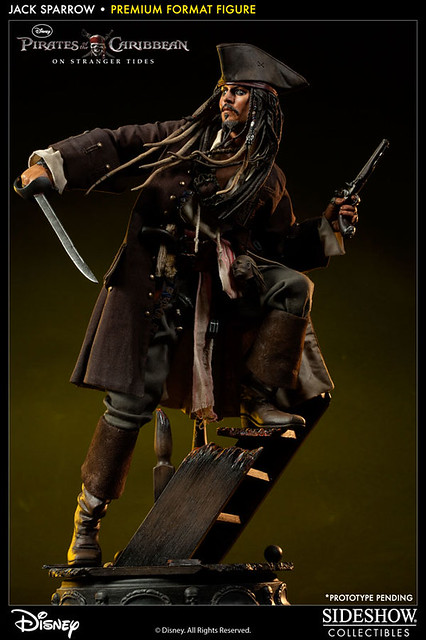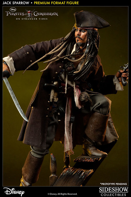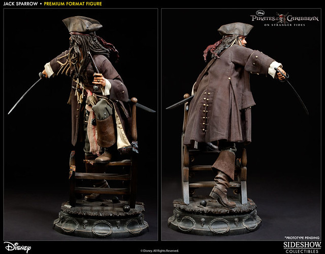 瘋瘋癲顛、詭計多謀的傑克船長充滿獨特魅力,先前由HOT TOYS推出的12吋DX版成為影迷不可錯過的夢幻逸品。如果您對傑克船長特別有愛,現在為您介紹由Sideshow最新推出的傑克船長立像一定要參考看看!採用電影第四集幽靈海的造型設計,傑克船長站在台階上回頭一望,看似是逃避追擊,但眼中的自信又像是狡兔一般、讓人充滿想像。右手持刀、左手持槍,持槍、持刀手勢不同,特別是重現傑克翹小指的特色。服裝飾品十分細緻,舊化處理也恰到好處。Sideshow網上限定版配有把海賊帽變換成頭巾裝扮的功能,有愛快上網搶購吧!本商品大小約 H50.8 X W 20.3 X L30.5 公分,美金參考售價約379.99元,預計2013年4月推出,提供大家參考!