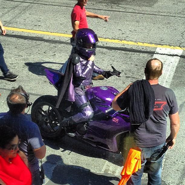 小編很喜歡美暢銷漫畫改編的Kick-Ass特攻聯盟,前陣子雖然有在有線電視上的電影台撥放,不過眼尖的朋友還是會發現很多太血腥的鏡頭都被剪掉了(嘆氣),其中Chloe Moretz 克蘿伊摩蕾茲飾演片中武功高強的紫色裝扮女英雄 Hit Girl「超殺女」,不但精通蝴蝶刀等各種兵器,還跟著Nicholas Cage 尼可拉斯凱吉飾演的「大老霸」Big Daddy四處打擊犯罪,最近有特攻聯盟二有關超殺女 的電影側拍照片流出,提供給喜歡Kick-Ass 特攻聯盟的玩具人參考。