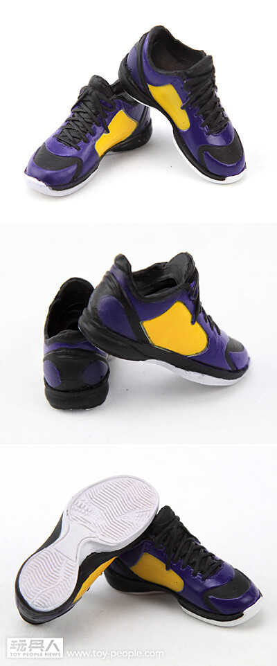 ▼ 球鞋可說是代表一位籃球選手地位的重要配件,這一款Kobe Bryant 有相當豐富的選擇。一開始人偶穿在身上的主場款球鞋(白)。
