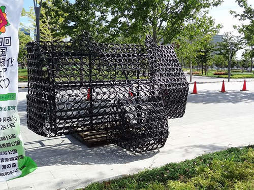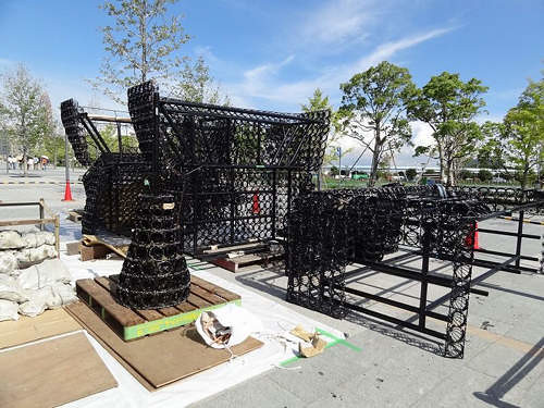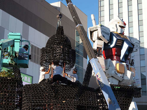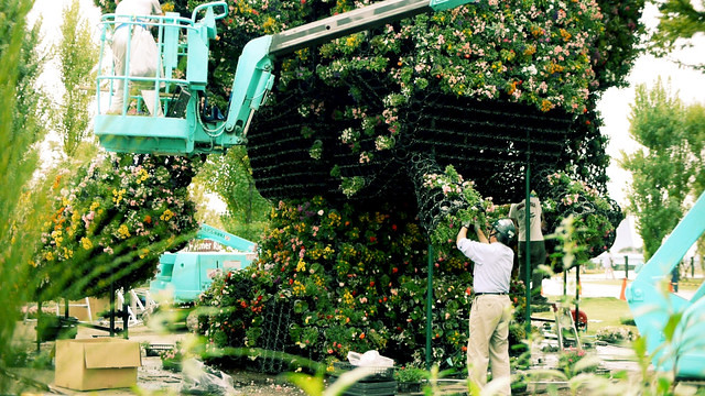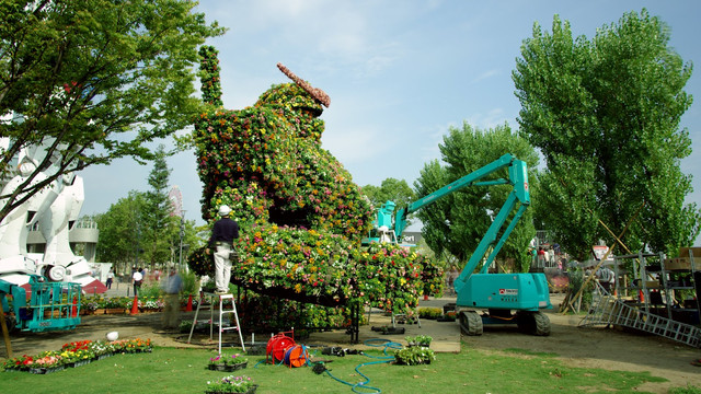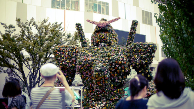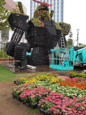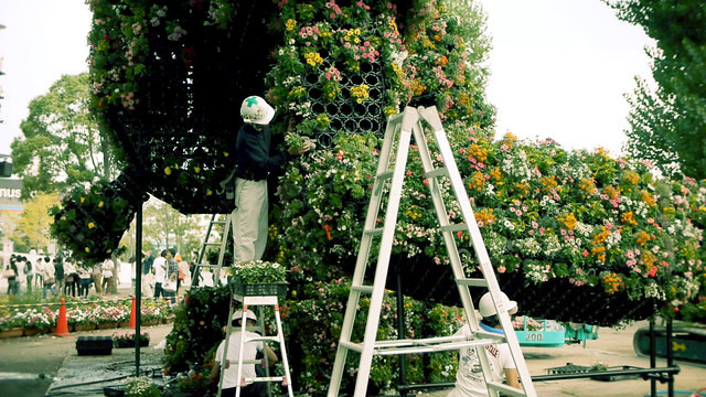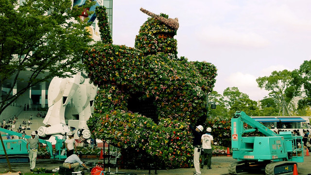 ↓ 將各式花種裝置在鋼彈腰像上的盆栽裡面的過程影片。