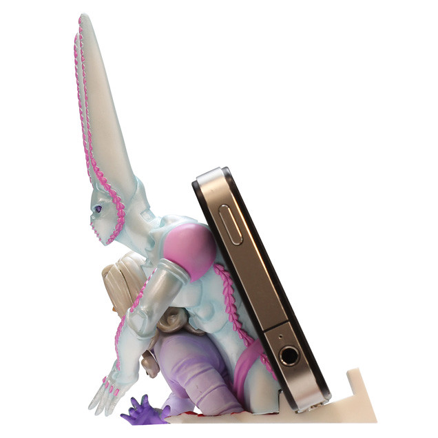 這兩款立體造型手機座,利用前方的名牌以及背後人物立體雕像作為依靠,讓手機能夠牢靠的放置,並且兼具了美化、陳列的功能。第七部立體造型手機座一共推出兩款:迪奧與、最終頭目大總統與其替身D4C,迪奧分為上、下兩段,可呈現劇情中穿梭於大總統替身D4C所帶來「平行世界」的模樣,分為上半身與下半身,一套兩款。大總統與其替身D4C(極為輕易實行的要命行徑 / Dirty Deeds Done Dirt Cheap ,D.D.D.D.C. 簡稱D4C),以發動替身的情境作為造型。兩款都各自有各自的魅力,尤其是第七部反派角色更是市面上少見的題材,各位JOJO粉絲的玩具人別錯過啦!~