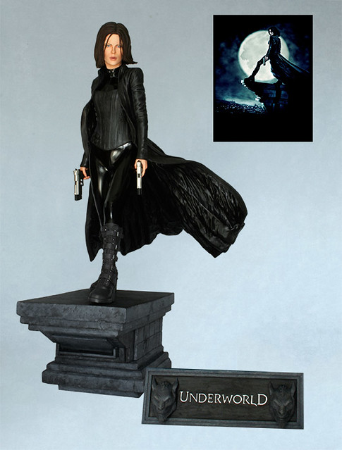 吸血鬼電影大作決戰異世界(UNDERWORLD)是以視覺風格強烈聞名的吸血鬼動作片。片中由凱特貝琴薩飾演的女主角莎倫娜將由玩具公司Hollywood Collectibles Group推出1/4比例雕像。動作採用第一集海報設定,整體製作相當細緻。作品高約24英吋,美金參考售價約329.95美元。限定版附贈寫有「UNDERWORLD」字樣的名牌,全球限量僅350份喔!普通版與限定版同價全球限量750份。所以看來要買就要搶限定版啊!現在上網預購,預計2013年3月底前推出,提供給大家參考!