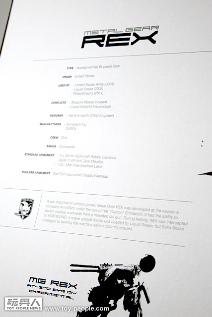 ▼ 背面記載了「Metal Gear REX」基本資料與故事背景設定。