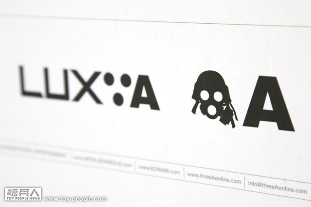 ▼ LUX∵A(讀作:LUX3A)與threeA LOGO。LUX∵A 是一個threeA 的商品系列,主要發行比起一般玩具商品相較於大尺寸、重量重的作品。過去threeA 所發行的Caesar 與「鋼鐵擂臺」皆被歸類於此一產品系列。