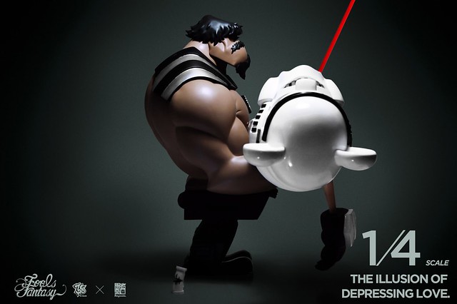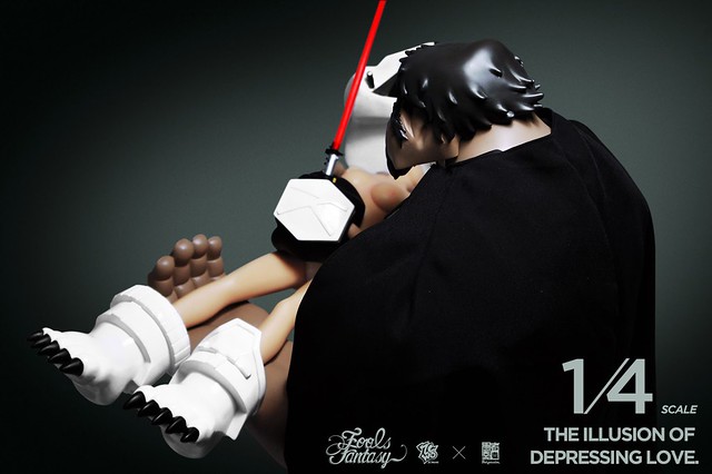 香港的潮流12吋玩具設計師Alan 再度推出新作“THE ILLUSION OF DEPRESSING LOVE”。這一款向星際大戰致敬的翻玩作品,Alan 以1/4 比例打造了屬於他強烈個人風格的黑武士與白兵作品,並且首次與香港玩具廠商ZCWO 合作生產,全程使用手工上色製作,藉由ZCWO 的能力能更忠實地重現Alan 的創作。