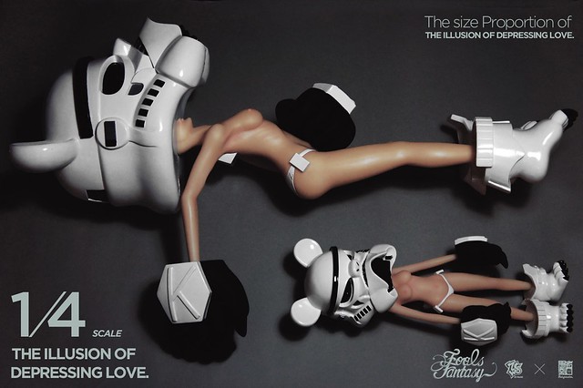 Fools Paradise – THE ILLUSION OF DEPRESSING LOVE 高約52cm 寬約60cm,全球限定200組,預計2013年第一季發貨,預購售價719美金(global AIR MAIL)、769 美金 (EMS speed post),有興趣的玩具人現在可至以下網址預購:doublefools.blogspot.tw/