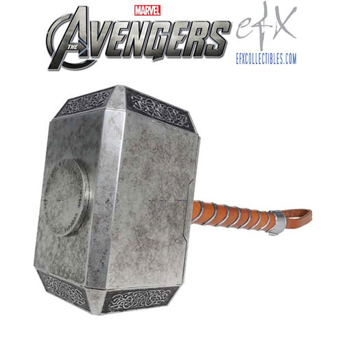 由專門製作好萊塢電影相關商品的eFX製作公司將在2013年3月推出1:1 尺寸大小的雷神之鎚,eFX製作公司曾經發行過星戰Luke Skywalker "Reveal" Lightsaber天行者路克的光劍和玩具人網站介紹過的考森探員所珍藏古董「美國隊長」蒐藏卡等等,都以專業電影道具複製成1:1 尺寸大小販售,這次也將以高品質製作1:1 尺寸大小的雷神之鎚,售價約59,800元日幣,喜歡收藏複製電影道具的玩具人可以參考一下!